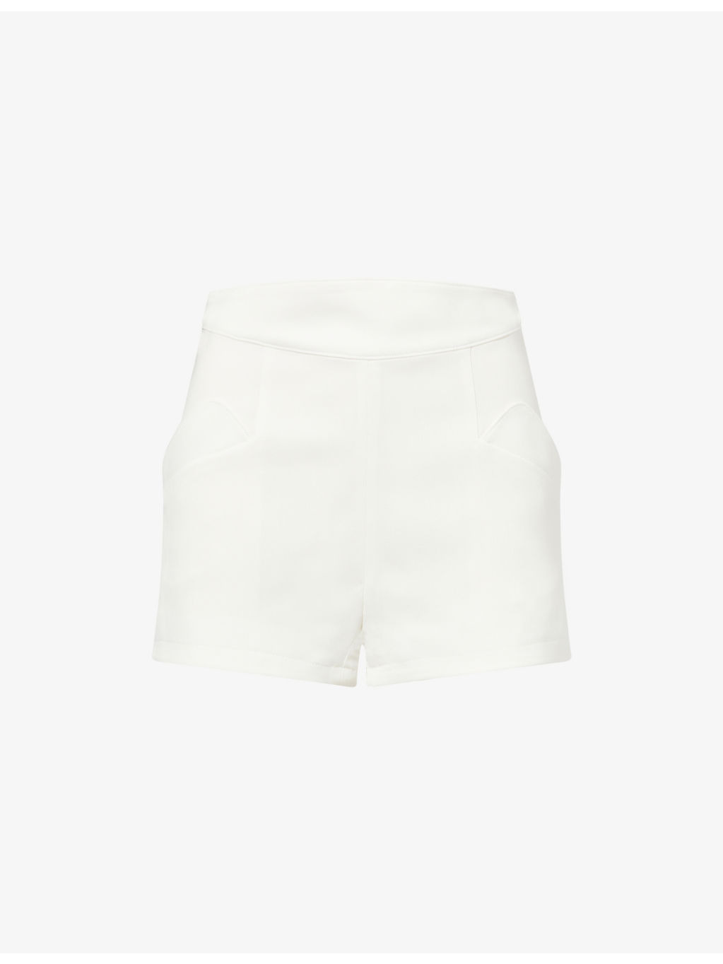 PRODUCT DETAILS - Mugler woven shorts - 78% viscose, 22% virgin wool; lining 100% cupro - Exposed button and concealed zip-fly fastening at back - Regular fit, high-rise, two slip pockets at front, darts at front and back, fully lined - Dry clean - Made in Ukraine - True to size - Size UK 8: rise 15in / 38cm, inside leg 1.5in / 3.5cm, leg opening 22in / 56cm - Model is 5ft 10in/1.78m and wears a size UK 8 - Lightweight, stretchy Ref: R04535281