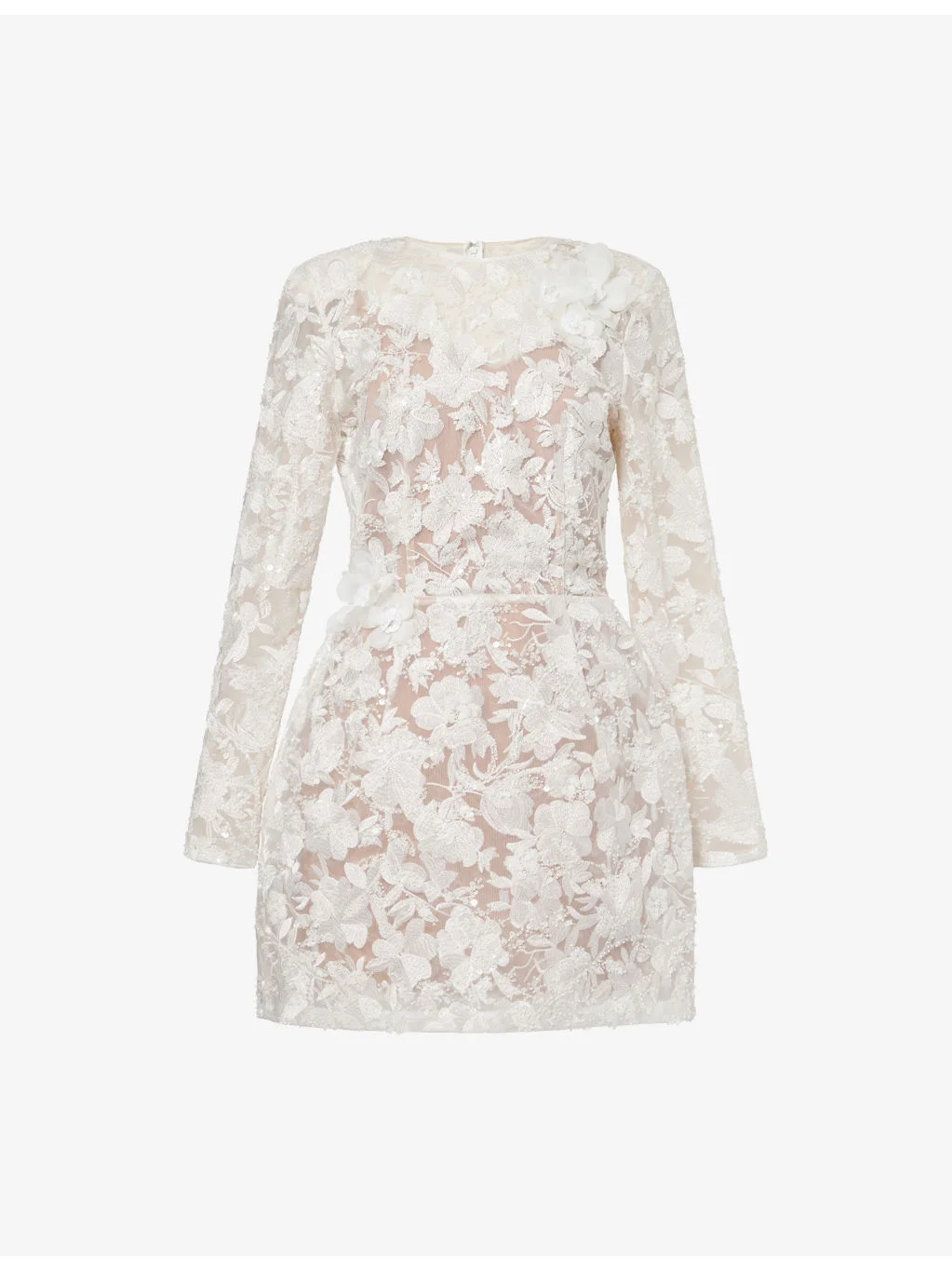 PRODUCT DETAILS - NADINE MERABI mesh mini dress - 100% polyester - Zip fastening - Fitted, structured mesh outer-layer, round neck, long sleeves, darts, fully lined, all-over embroidery - Dry clean only - True to size - Size 8: length 33in / 83cm - Model is 5ft 10in/1.78m and wears a size UK 8 - Midweight, non-stretch Ref: R04585698