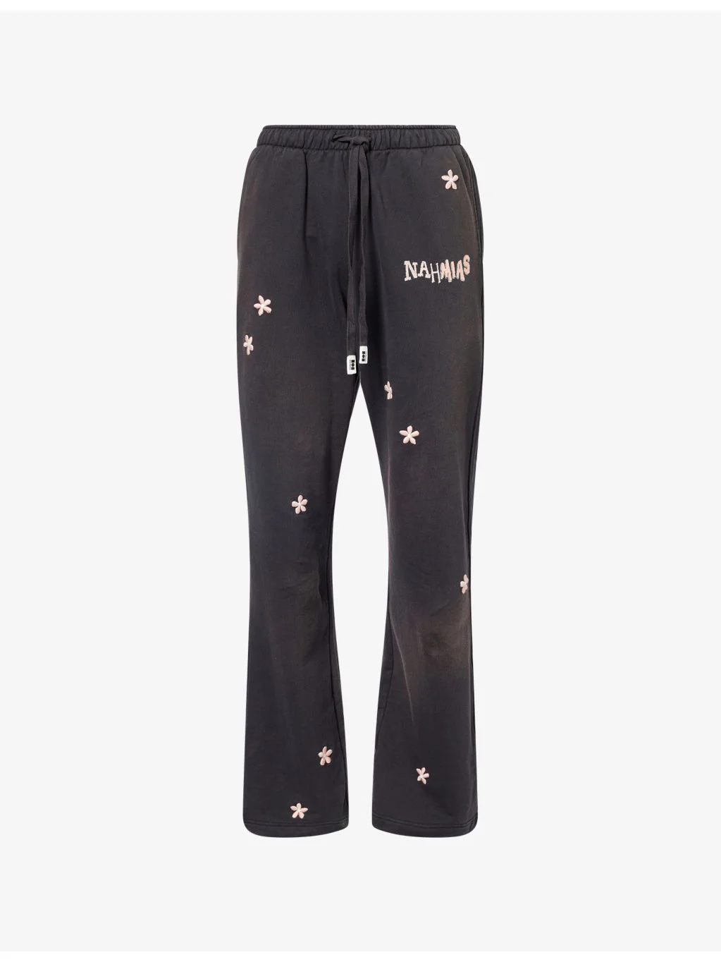 PRODUCT DETAILS - Nahmias cotton-jersey jogging bottoms - 100% cotton - Relaxed fit, high-rise, wide leg, drawstring elasticated waistband, two slip pockets and brand print at front, patch pocket and brand patch at back, all-over flower embroidery - Specialist dry clean - Model is 6ft 2in/1.88m and wears a size medium - Midweight, stretchy Ref: R04570142