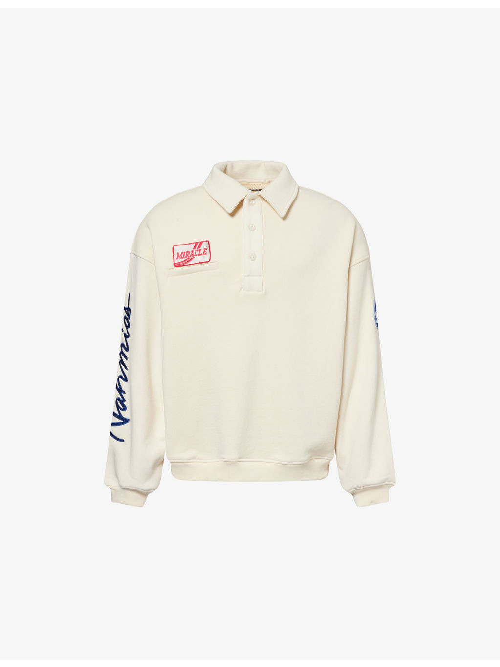 PRODUCT DETAILS - Nahmias cotton-jersey polo shirt - 100% cotton - Exposed button fastening at front - Relaxed fit, polo collar, long sleeves, welt pocket and patch at front, patch at back and sleeve, brand embroidery at sleeve, ribbed trims - Specialist dry clean - Made in USA - Model is 6ft 2in/1.88m and wears a size medium - Midweight, stretchy Ref: R04507387
