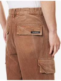 PRODUCT DETAILS - Nahmias denim cargo jeans - 100% cotton - Button and button-fly fastening - Partially elasticated waist, structured waistband, belt loops, two slip pockets at front, two flap pockets at back, two cargo pockets at leg, rubberised brand logo at back, darted detailing, faded wash - Machine wash cold - Made in USA - Size medium: rise 13.7in / 35cm, inside leg 29.5in / 75cm, leg opening 24in / 61cm - Model is 6ft 2in/1.88m and wears a size medium - Midweight, non-stretch Ref: R04538205
