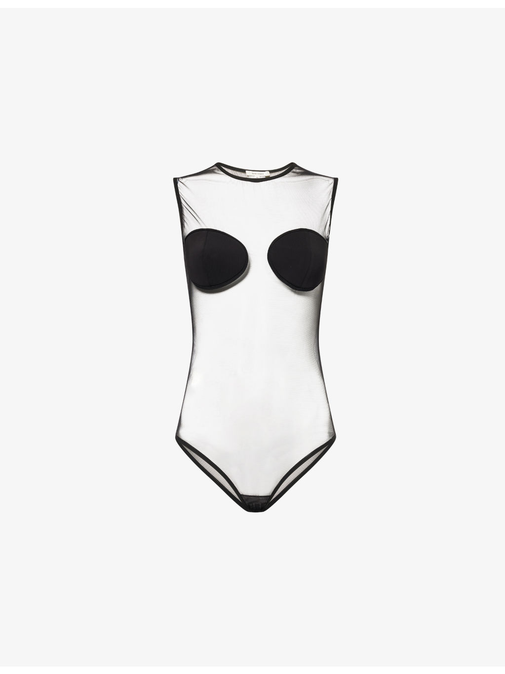 PRODUCT DETAILS - Nensi Dojaka mesh bodysuit - 84% polyamide, 16% elastane - Snap fastening - Round neck, sleeveless, padded cups, all-over sheer mash, binding at trims - Specialist dry clean only - True to size - Model is 5ft 10in/1.78m and wears a size small - Lightweight, slight stretch Ref: R04518667
