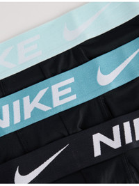 PRODUCT DETAILS - Nike pack of three stretch-jersey trunks - 92% polyester, 8% elastane - Mid-rise, branded elasticated waistband, supportive panel at front, logo print at front - Machine wash at 30°C - Model is 6ft 2in/1.88m and wears a size medium - Lightweight, stretchy - For hygiene reasons, we are unable to exchange or refund this product, unless faulty. Ref: R04402643