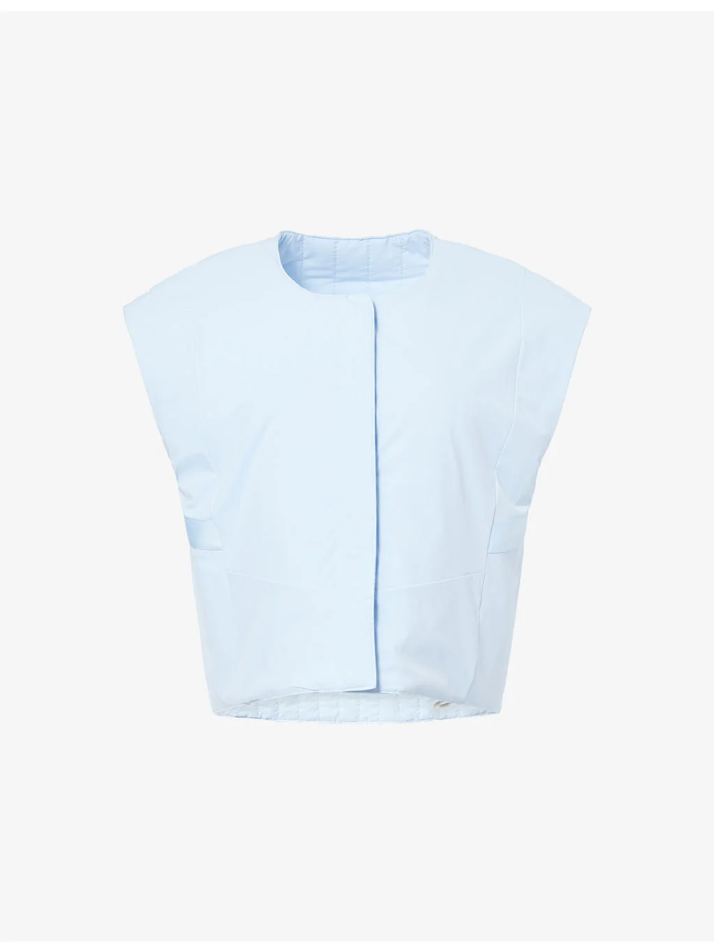 PRODUCT DETAILS - Nike shell gilet - 83% polyester, 17% elastane; filling 100% polyester - Pressed stud fastening - Round neck, capped sleeves, two slip pockets at front, pleated back, slightly cropped - Machine wash cold - True to size - Model is 5ft 10in/1.78m and wears a size small - Lightweight, non-stretch Ref: R04562953