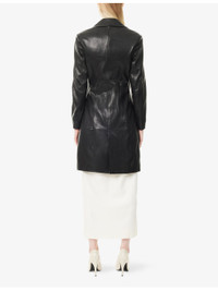 PRODUCT DETAILS - Nour Hammour leather coat - 100% lamb leather; lining 63% cupro, 37% viscose; sleevelining 100% silk - Exposed button fastenings at front - Regular fit, single-breasted, notch lapels, padded shoulders, long sleeves, two side slip pockets, central rear vent, midi length - Specialist leather clean - True to size - Size UK 8: length 39.5in / 101cm - Model is 5ft 10in/1.78m and wears a size UK 8 - Midweight, non-stretch Ref: R04585663