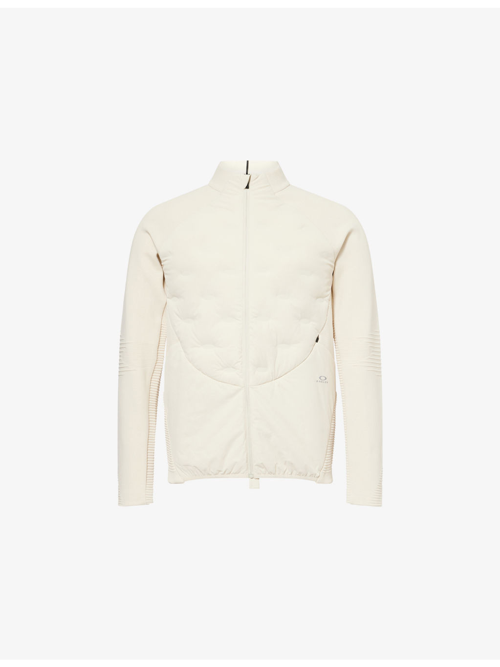 PRODUCT DETAILS - Oakley stretch-nylon jacket - 90% nylon, 10% elastane - Zip fastening at front - Stand collar, long sleeves, one concealed zipped pocket at front, logo print at front, all-over padding and contour ribbing - Dry clean - Model is 6ft 2in/1.88m and wears a size medium - Lightweight, slight stretch Ref: R04531035