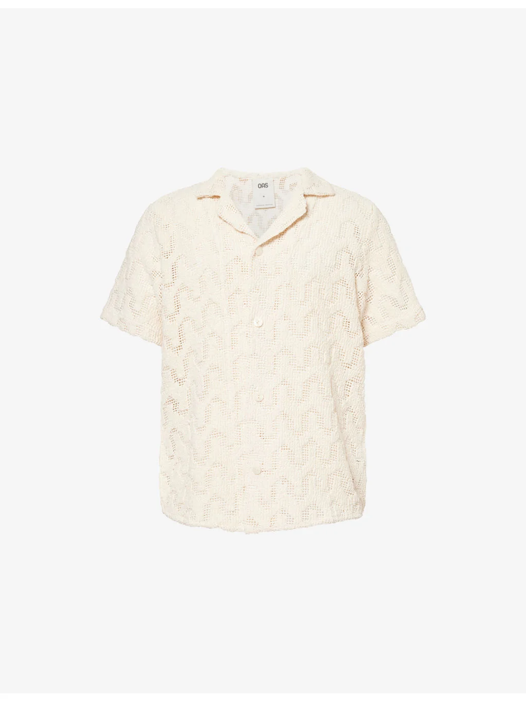 PRODUCT DETAILS - OAS cotton-blend shirt - 90% cotton, 10% elastane - Button fastening - Relaxed fit, Cuban collar, short sleeves, woven-crochet texture - Machine wash cold - True to size - Model is 6ft 2in/1.88m and wears a size medium - Lightweight, slight stretch Ref: R04496868