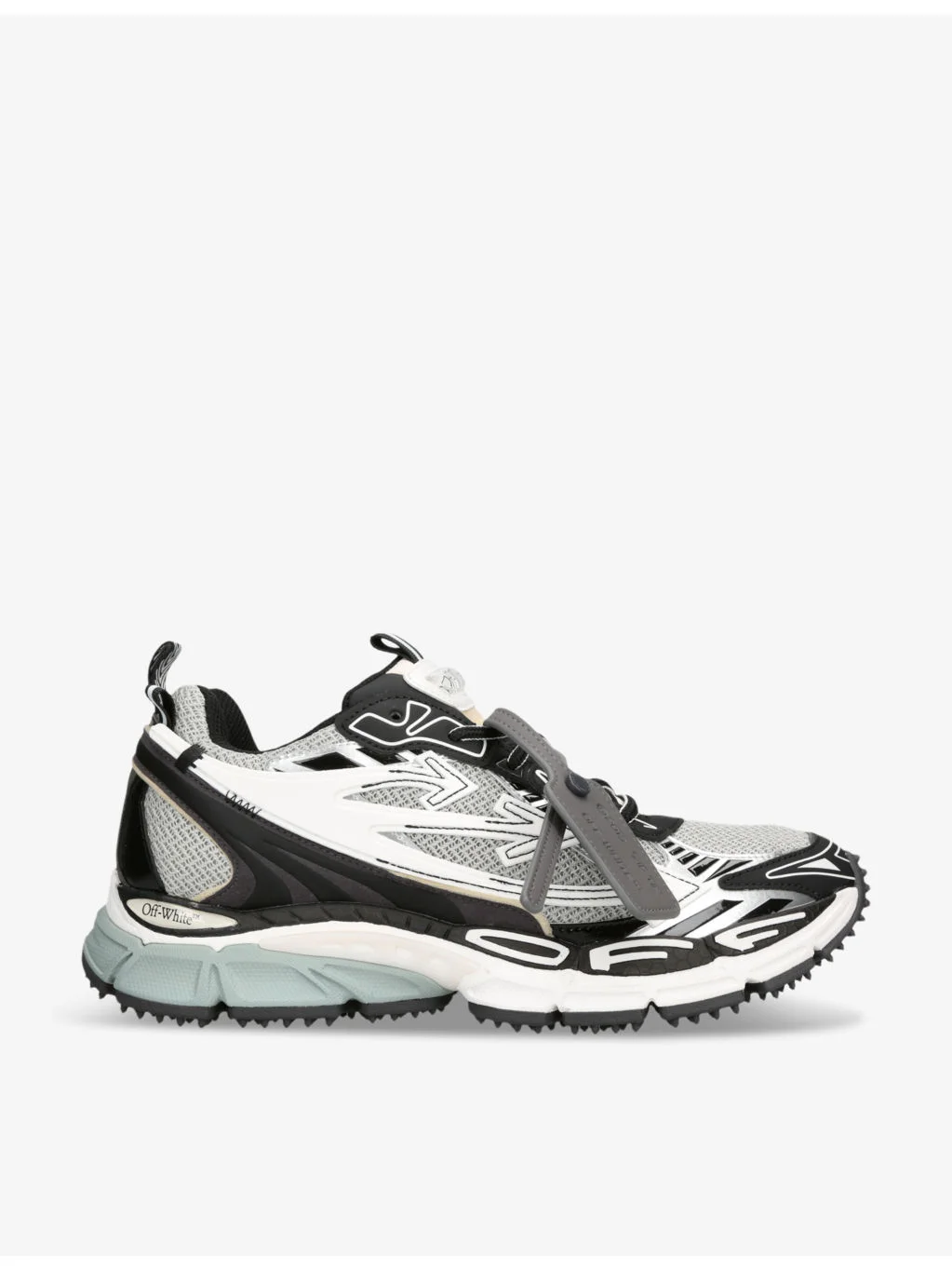 PRODUCT DETAILS - Off-White c/o Virgil Abloh mesh and faux-leather low-top trainers - 37% polyurethane, 26% polyester, 19% polypropylene, 18% faux leather - Magnetic fastening - Closed almond toe, mesh panels with faux-leather overlay, contrasting colourway, branded tongue and heel with pull tab, padded collars, contrast arrow logo at sides, chunky sole, signature brand tag on laces - Wipe with a clean, dry cloth - Upper: 37% polyurethane, 26% polyester, 19% polypropylene, 18% faux leather - Lining: 100% polyester - Sole: 100% rubber Ref: R04356340