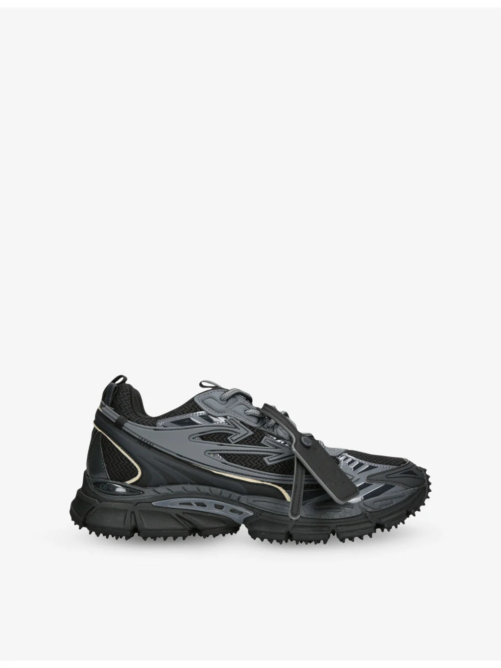 PRODUCT DETAILS - Off-White c/o Virgil Abloh mixed-textile trainers - 37% polyurethane, 26% polyester, 18% faux leather, 19% polypropylene - Lace-up fastening - Chunky silhouette, brand tag at side, brand text pattern, stacked sole - Wipe with a clean, dry cloth - Upper: 37% polyurethane, 26% polyester, 18% faux leather, 19% polypropylene - Lining: 100% polyester - Sole: 100% rubber Ref: R04414134