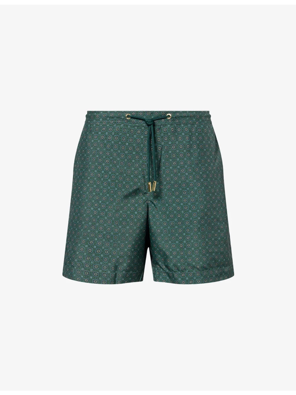 PRODUCT DETAILS - Orlebar Brown swim shorts - 100% polyester - Pulls on - Elasticated drawstring waist, side pockets, mesh lining, all-over print - Machine wash mild - Model is 6ft 2in/1.88m and wears a size medium - Midweight, non-stretch Ref: R04548903
