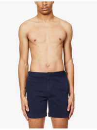 PRODUCT DETAILS - Orlebar Brown stretch-cotton shorts - 97% cotton, 3% elastane - Concealed button, hook-and-eye and zip-fly fastening at front - Regular fit, mid-rise, structured waistband, waist adjusters, two slip pockets at front, notch at waist back, darts at back, two buttoned welt pockets at back, branded buttons, soft twill texture, branded silver-toned hardware - Machine wash cold - Made in Portugal - Model is 6ft 1in/1.85m and wears a size UK 30 - Lightweight, slight stretch Ref: R04085804