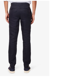 PRODUCT DETAILS - Orlebar Brown linen trousers - 100% linen - Exposed button and concealed zip-fly fastening at front - Regular fit, mid-rise, tapered leg, elasticated drawstring waist, two slip pockets at sides, darts at back, two jetted pockets at back, branded hardware, partially lined - Machine wash cold - Made in Portugal - Size UK 30: rise 11in / 28cm, inside leg 32in / 81cm, leg opening 14in / 36cm - Model is 6ft 2in/1.88m and wears a size UK 30 - Lightweight, non-stretch Ref: R04150087