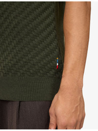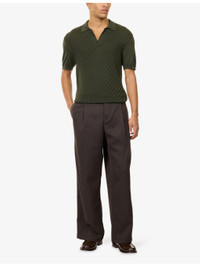 PRODUCT DETAILS - Orlebar Brown silk and cotton polo shirt - 62% silk, 38% cotton - Polo collar - Elasticated cuffs - Regular fit, V-neck, collar, short sleeves, embossed pattern at front, all-over knitted, ribbed trims - Hand wash cold - Made in Italy - Model is 6ft 2in/1.88m and wears a size medium - Lightweight, stretchy Ref: R04548882