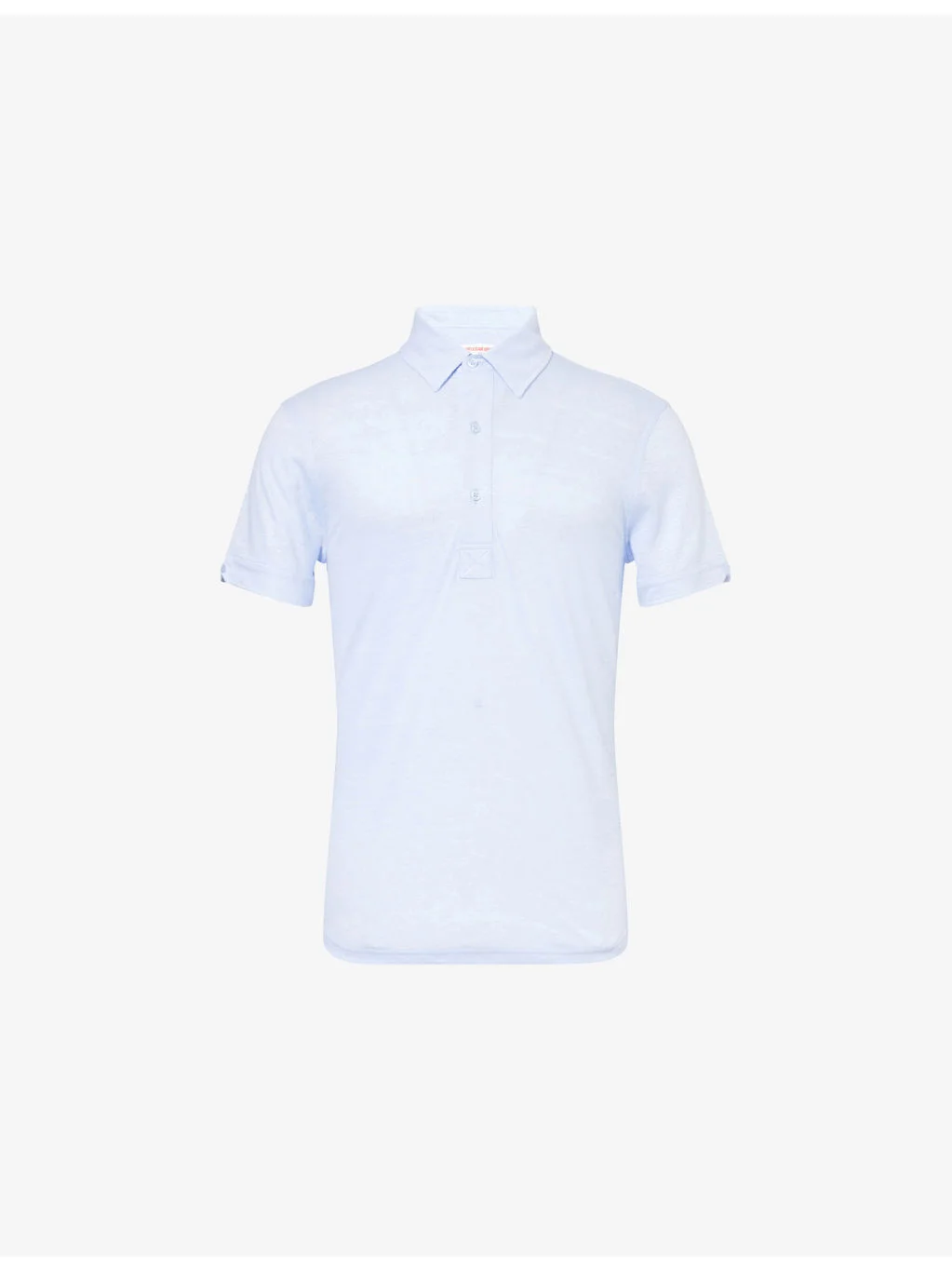 PRODUCT DETAILS - Orlebar Brown linen shirt - 100% linen - Exposed button fastening at front - Spread collar - Closed cuffs - Regular fit, collar, short sleeves, button embellishment at cuffs, brand tab at side - Machine wash at 30°C - Made in Portugal - Model is 6ft 2in/1.88m and wears a size medium - Lightweight, stretchy Ref: R04548883