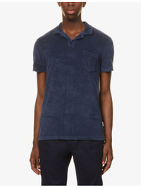 PRODUCT DETAILS - Orlebar Brown cotton polo top - 100% cotton - Pulls on - Polo collar - Relaxed fit, dropped shoulders, short sleeves, patch pocket at chest, all-over towelling texture, branded tab at side seam, notched hem - Machine wash cold - Made in Portugal - Model is 6ft 1in/1.85m and wears a size medium - Lightweight, slight stretch