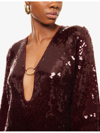 PRODUCT DETAILS - Oseree sequin-embellished kaftan - 100% polyester - Relaxed fit, deep V-neck, ring detail, long flared sleeves, all-over sequin embellishment - Machine wash at 30°C - True to size - Model is 5ft 10in/1.78m and wears a size small - Lightweight, slight stretch Ref: R04485790