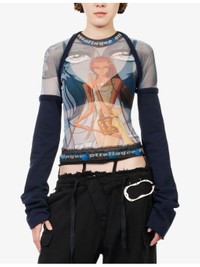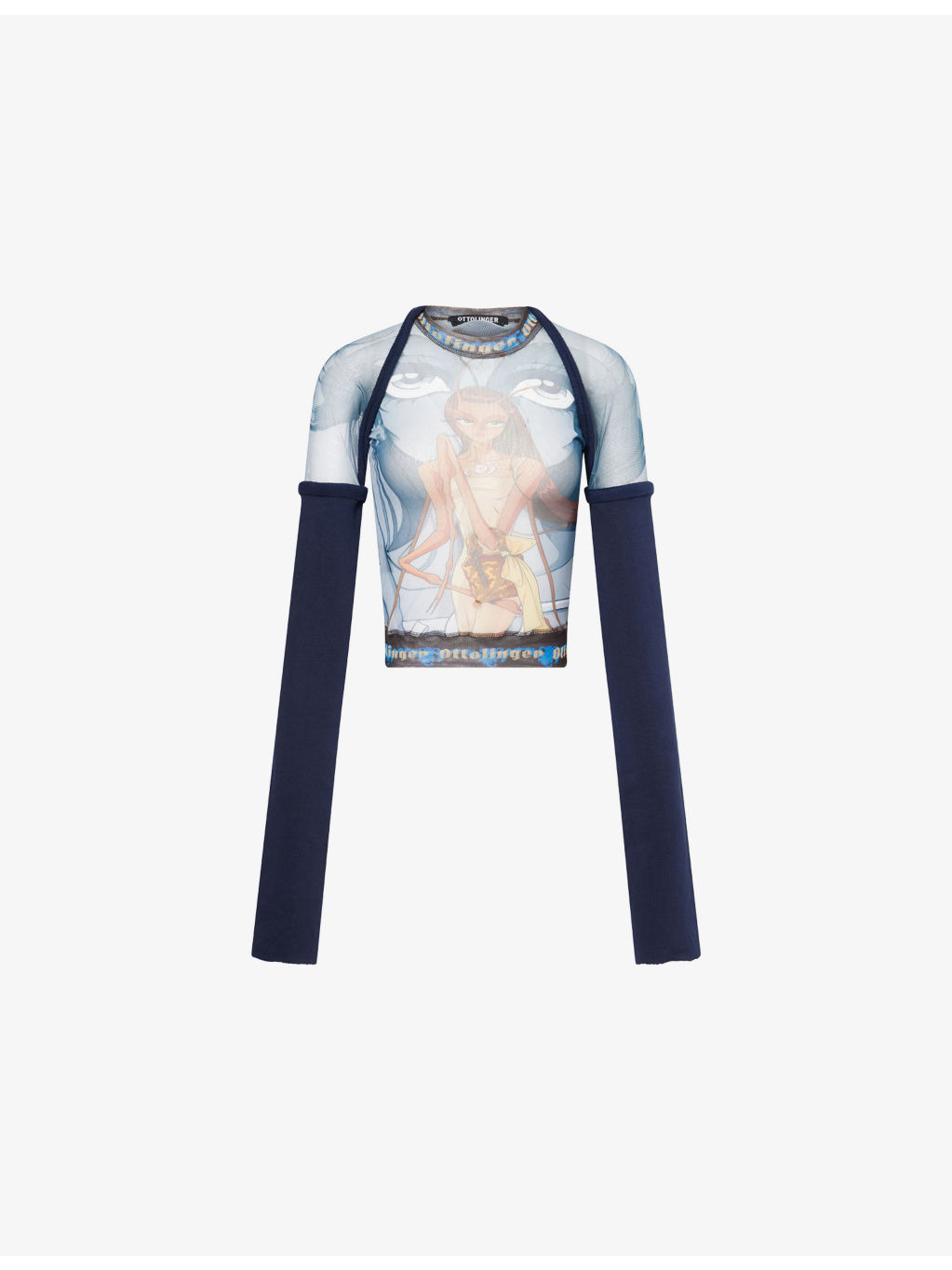 PRODUCT DETAILS - Ottolinger mesh top - 50% cotton, 46% polyester, 4% elastane - Regular fit, round neck, long sleeves, hybrid design, graphic pattern - Machine wash cold - Made in Greece - True to size - Model is 5ft 10in/1.78m and wears a size small - Lightweight, stretchy Ref: R04526252