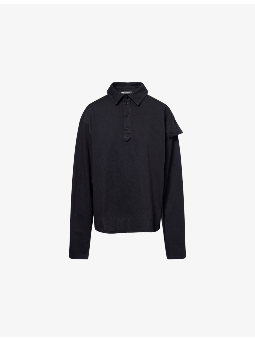 PRODUCT DETAILS - Ottolinger cotton-jersey polo shirt - 100% cotton - Exposed button fastening at front - Oversized, polo collar, long sleeves, one short sleeve and hanging panels, brand print at back - Machine wash at 30°C - Made in Greece - True to size - Model is 5ft 10in/1.78m and wears a size small - Lightweight, stretchy Ref: R04520713