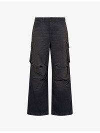 PRODUCT DETAILS - Our Legacy cotton cargo trousers - 100% cotton - Button and zip-fly fastening - Wide leg, cargo style, belt loops, patch pockets, paint splashes, dark wash - Machine wash mild - Size 32: rise 12.5in / 32cm, inside leg 31in / 78.7cm, leg opening 22in / 55.8cm - Model is 6ft 2in/1.88m and wears a size UK 32 - Midweight, non-stretch Ref: R04561284