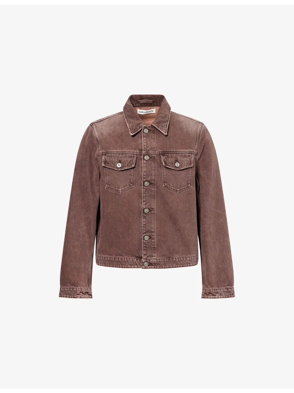 PRODUCT DETAILS - Our Legacy denim jacket - 100% cotton - Exposed button fastening at front - Relaxed fit, spread collar, long sleeves, buttoned cuffs, two buttoned pockets at front, buttoned epaulette at sides, washed - Machine wash at 30°C - Made in Portugal - Size UK 40: length 24in / 61cm, chest 46in / 117cm - Model is 6ft 2in/1.88m and wears a size UK 40 - Midweight, slight stretch Ref: R04561272