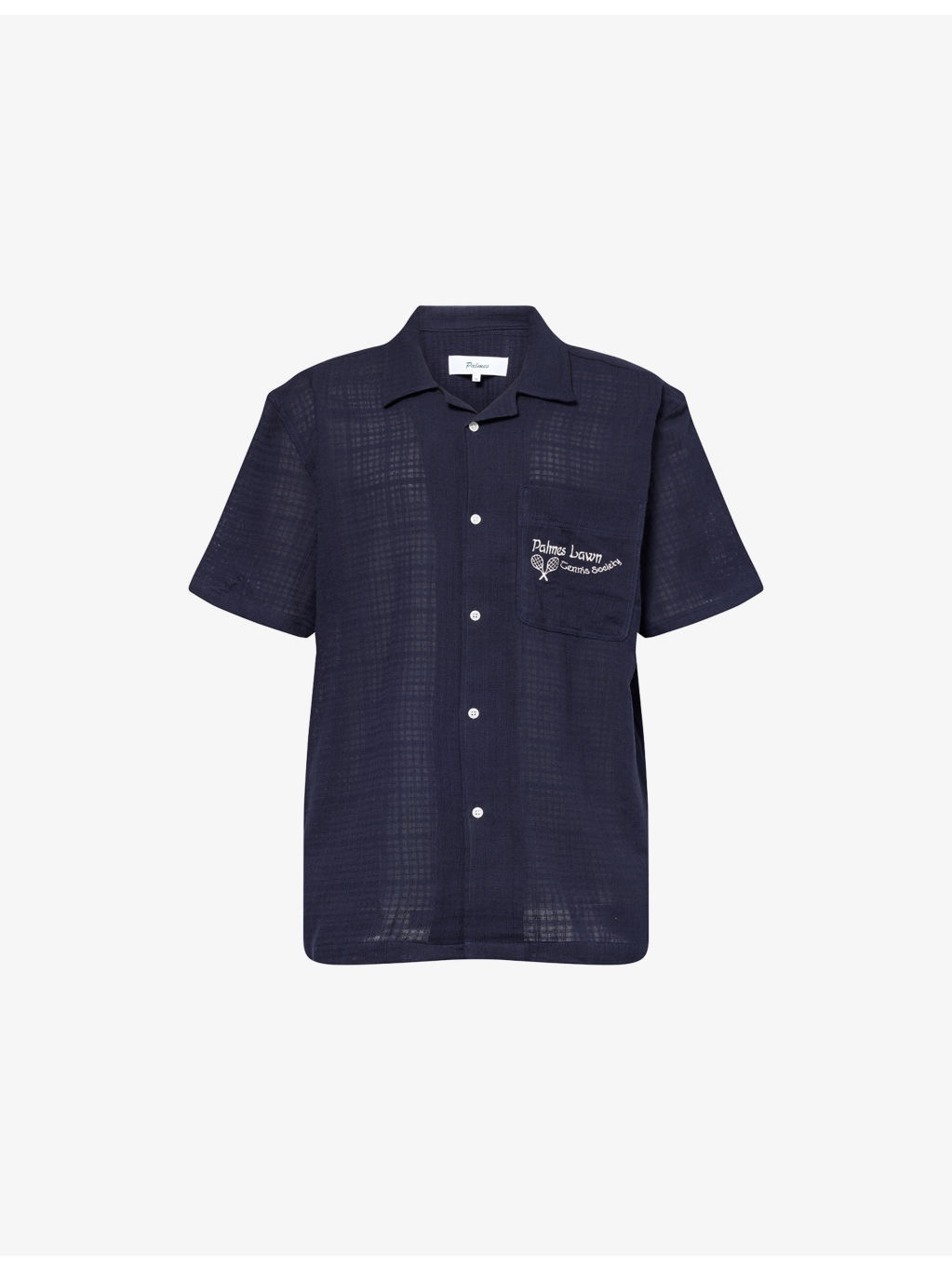 PRODUCT DETAILS - Palmes cotton shirt - 100% cotton - Button fastening at front - Classic collar, short sleeves, one patch pocket at chest, embroidered branding at pocket, semi-sheer, all-over woven texture - Machine wash at 40°C - Made in Macedonia - Size UK 40: length 32.6in / 83cm, chest 47.2in / 120cm - Model is 6ft 2in/1.88m and wears a size UK 40 - Lightweight, non-stretch Ref: R04489274