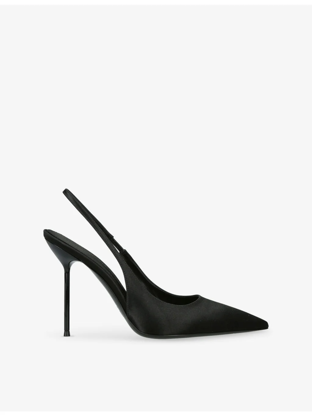 PRODUCT DETAILS - Paris Texas leather courts - 100% satin - Pointed toe, slingback strap, branded footbed, stiletto heel - Heel height 105mm / 4.13in - Wipe with a clean, dry cloth - Made in Italy - Upper: 100% satin - Lining: 100% leather - Sole: 100% leather Ref: R04512430
