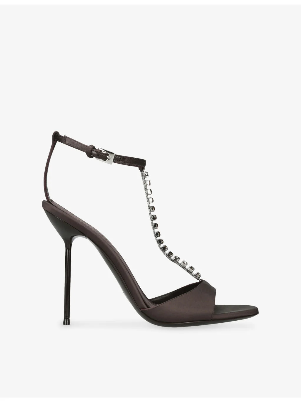 PRODUCT DETAILS - Paris Texas satin heeled sandals - 100% satin - Ankle-buckle fastening - Almond open toe, jewel-embellished T-strap, adjustable ankle strap, silver-toned hardware, high stiletto heel - Heel height 105mm / 4.13in - Specialist leather clean - Made in Italy - Upper: 100% satin - Lining: 100% leather - Sole: 100% leather Ref: R04500364