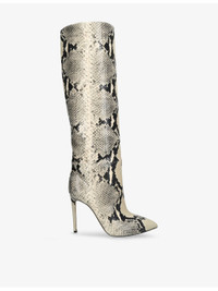 PRODUCT DETAILS - Paris Texas leather heeled boots - 100% leather - Zip fastening - Knee-high, pointed closed toe, barrel shaft, high stiletto heel, python effect finish - Heel height 105mm / 4.13in - Specialist leather clean - Upper: 100% leather - Lining: 100% leather - Sole: 100% leather Ref: R04471331