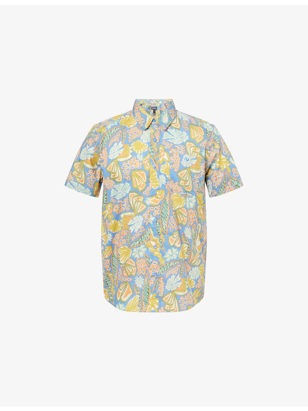 PRODUCT DETAILS - Patagonia cotton-blend shirt - 60% cotton, 40% polyester - Exposed button fastening at front - Spread collar - Closed cuffs - Relaxed fit, collar, short sleeves, buttoned pocket at front, straight yoke and pleat at back, brand tab at side, all-over floral print, curved hem - Machine wash at 30°C - Size medium: length 28in / 72cm, chest 42in / 107cm - Model is 6ft 2in/1.88m and wears a size medium - Lightweight, stretchy Ref: R04423072