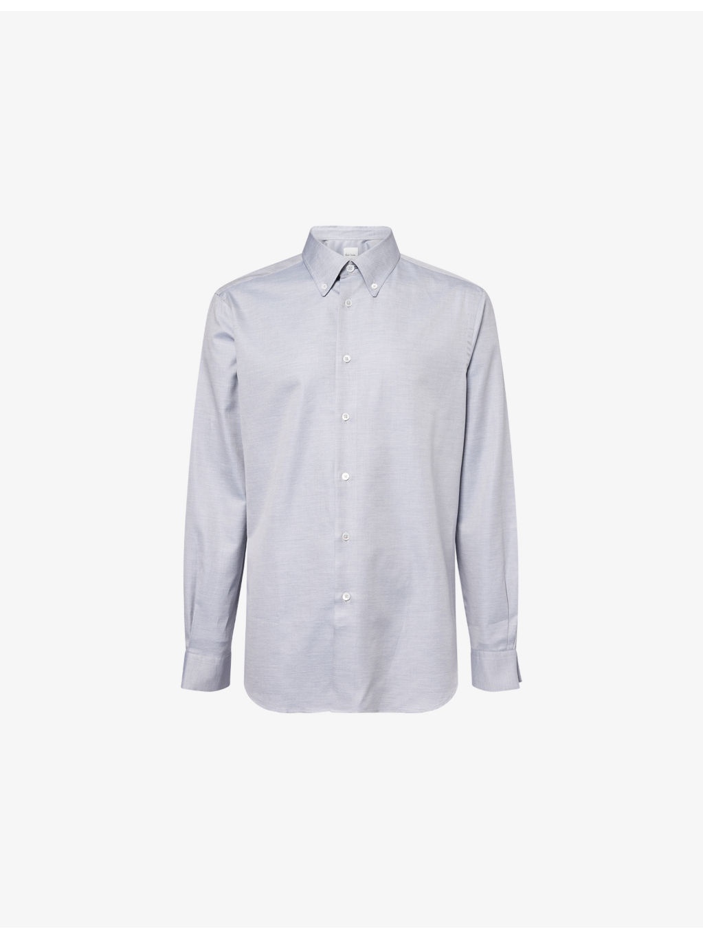 PRODUCT DETAILS - Paul Smith cotton shirt - 100% cotton - Exposed button fastening at front - Casual fit, classic collar, long sleeves, buttoned cuff, striped branding at inner button placket, curved hem - Machine wash cold - Made in Italy - Size medium: length 30.7in / 78cm, chest 42.5in / 108cm - Model is 6ft 2in/1.88m and wears a size medium - Lightweight, non-stretch Ref: R04465806