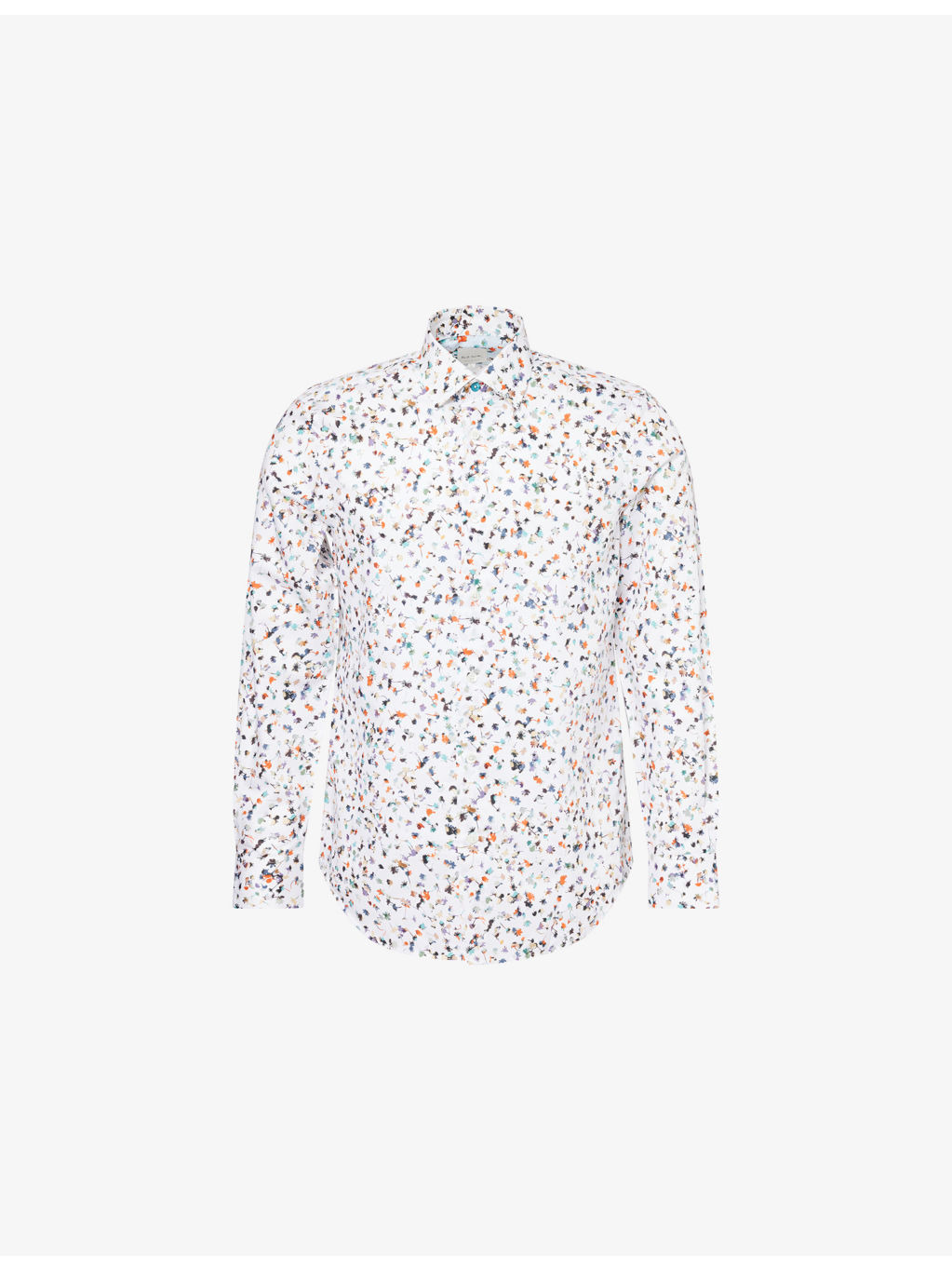 PRODUCT DETAILS - Paul Smith cotton blend shirt - 61% cotton, 39% lyocell - Pointed collar, long sleeves, buttoned cuffs, all-over floral print, curved hem - Machine wash at 30°C - Made in Italy - Size 15: length 32.6in / 83cm, chest 38.5in / 98cm - Model is 6ft 2in / 1.88m and wears a collar size 15 - Lightweight, non-stretch Ref: R04484568