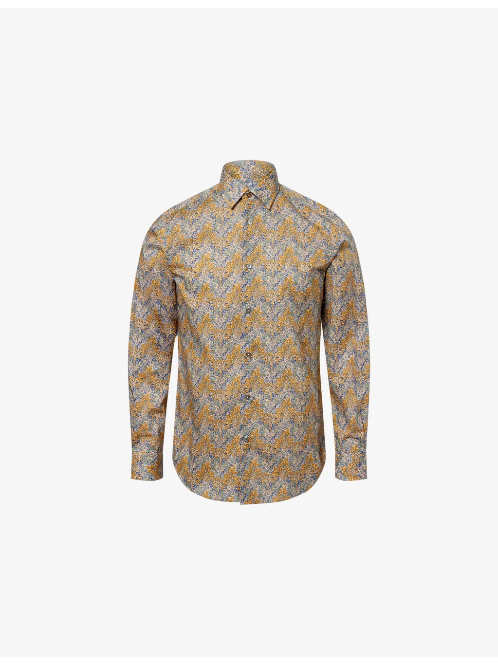 PRODUCT DETAILS - Paul Smith cotton shirt - 100% cotton - Exposed button fastenings at front - Regular fit, pointed collar, long sleeves, buttoned cuffs, horn buttons, curved hem, all-over Liberty floral print - Machine wash at 30°C - Collar size 15: length 30in / 76cm, chest 40in / 101.5cm - Model is 6ft 2in / 1.88m and wears a collar size 15 - Lightweight, non-stretch Ref: R04536649