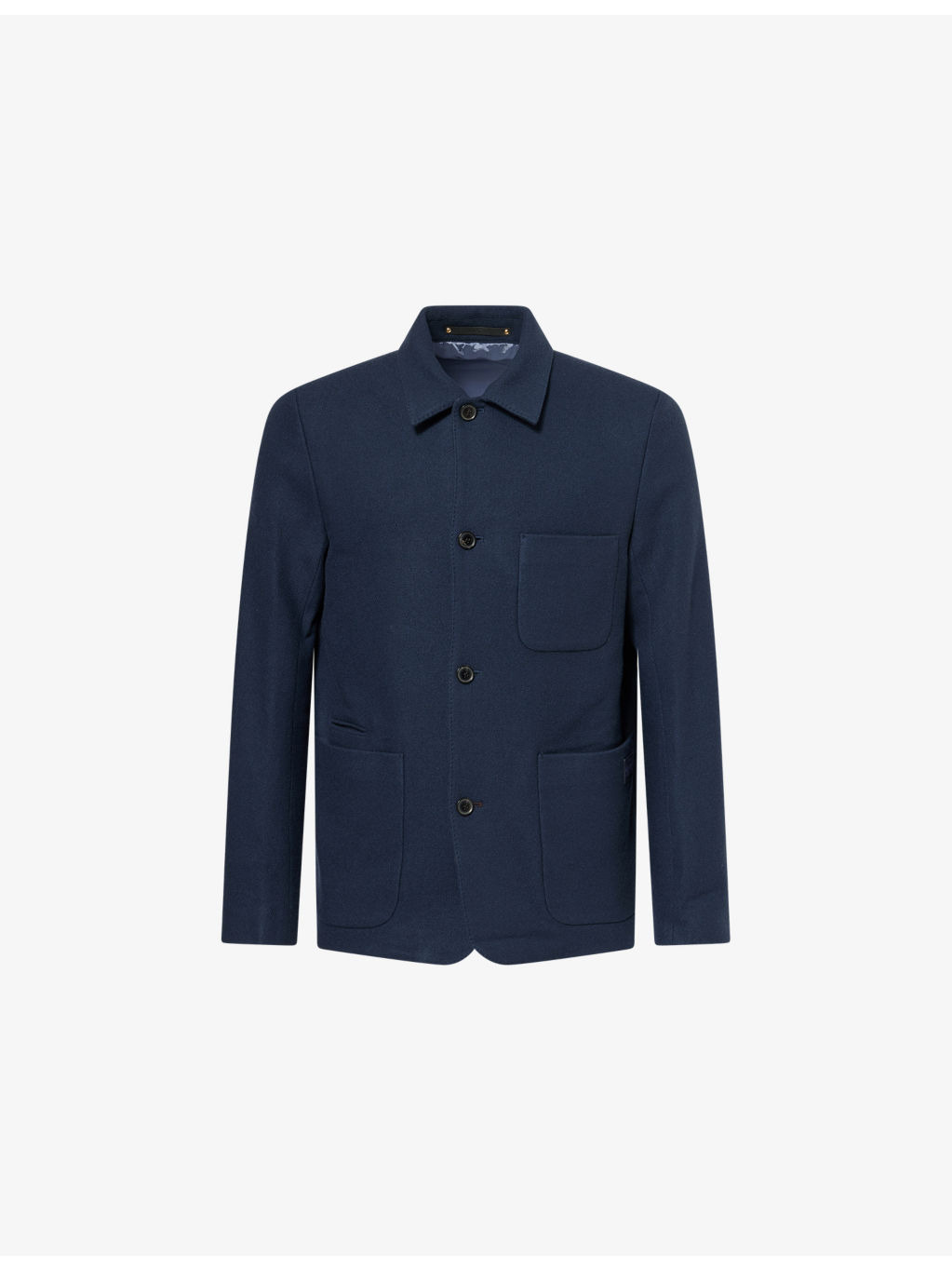 PRODUCT DETAILS - Paul Smith wool jacket - 100% wool - Button fastening - Relaxed fit, pointed collar, long sleeves, patch pockets, lined, knitted - Dry clean - Size medium: length 29in / 73.6cm - Model is 6ft 2in/1.88m and wears a size medium - Midweight, non-stretch Ref: R04484541