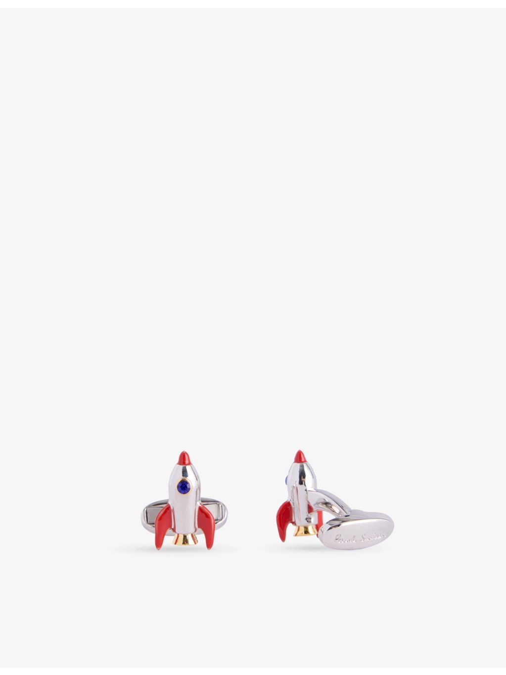 PRODUCT DETAILS - Paul Smith copper and zinc cufflinks - 70% copper, 30% zinc - T-bar fastening - Space rocket design, engraved branding at back, silver-toned, polished finish - Height 2cm, width 1cm, depth 2cm - Wipe with a clean, dry cloth Ref: R04483145