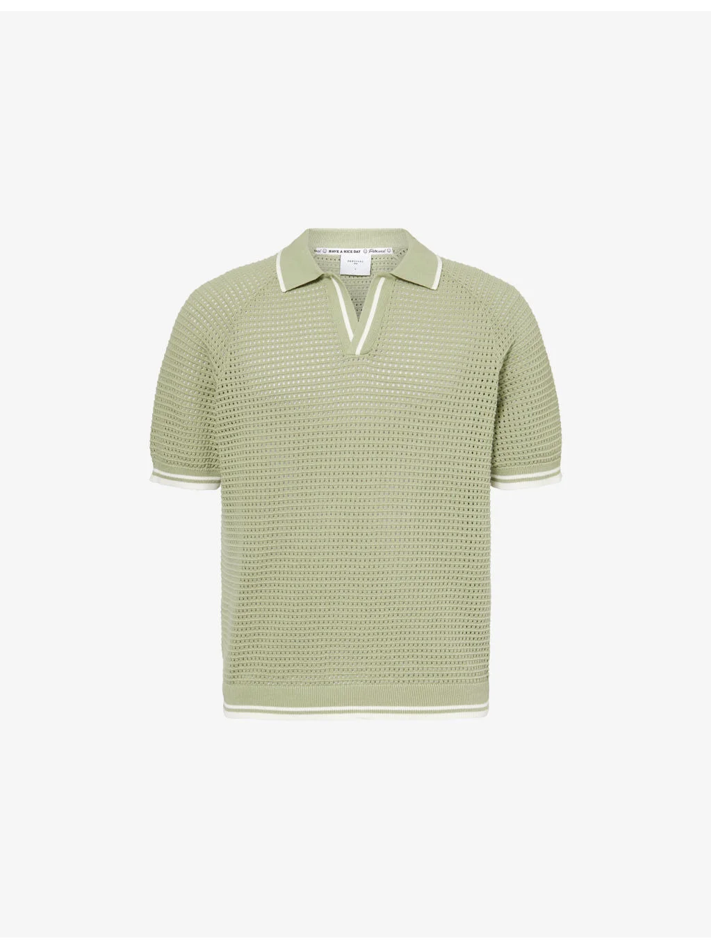 PRODUCT DETAILS - Percival cotton knitted polo shirt - 100% cotton - Relaxed fit, polo collar, short sleeves, open knit, stripe ribbed trims - Hand wash cold - Model is 6ft 2in/1.88m and wears a size medium - Lightweight, stretchy Ref: R04603325