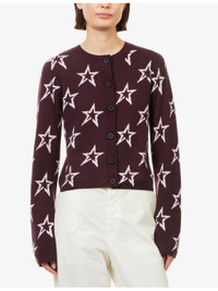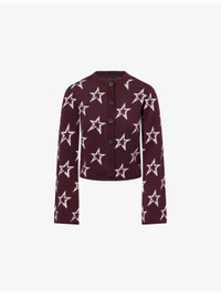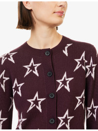 PRODUCT DETAILS - Perfect Moment wool cardigan - 100% merino wool - Exposed button fastening at front - Relaxed fit, round-neck, long sleeves, all-over star print, all-over knitted, ribbed trims - Hand wash cold - True to size - Size small: length 18in / 47cm - Model is 5ft 10in/1.78m and wears a size small - Midweight, stretchy Ref: R04526953