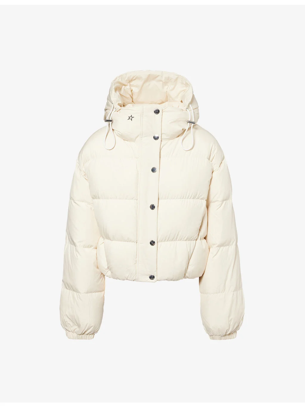 PRODUCT DETAILS - Perfect Moment down jacket - 100% polyester; filling 90% duck down, 10% feathers; lining 100% polyester - Zip fastening - Regular fit, funnel neck, drawstring hood, logo embroidery at neck front, long sleeves, slip pockets at front, padded and quilted, branded hardware - Dry clean only - True to size - Model is 5ft 10in/1.78m and wears a size small - Heavyweight, non-stretch Ref: R04569690