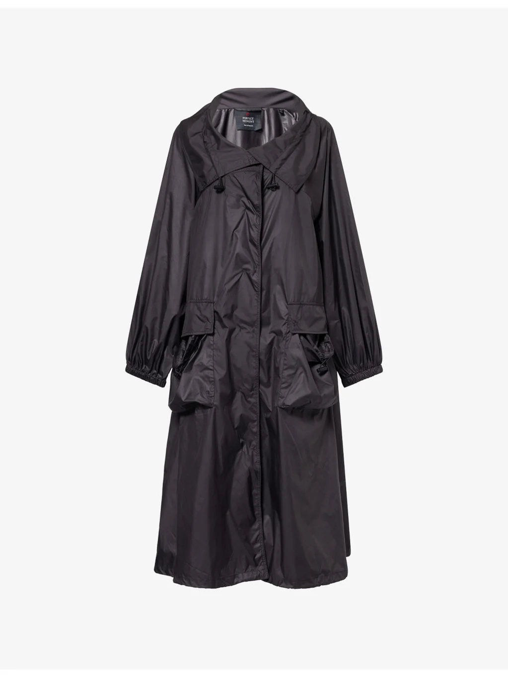 PRODUCT DETAILS - Perfect Moment woven coat - 100% polyester - Popper fastening - Relaxed oversized fit, drawstring collar, long sleeves, elasticated cuffs, two large patch pockets at front, star print at side, all-over water resistant fabric, unlined - Dry clean - True to size - Model is 5ft 10in/1.78m and wears a size small - Lightweight, non-stretch Ref: R04569689