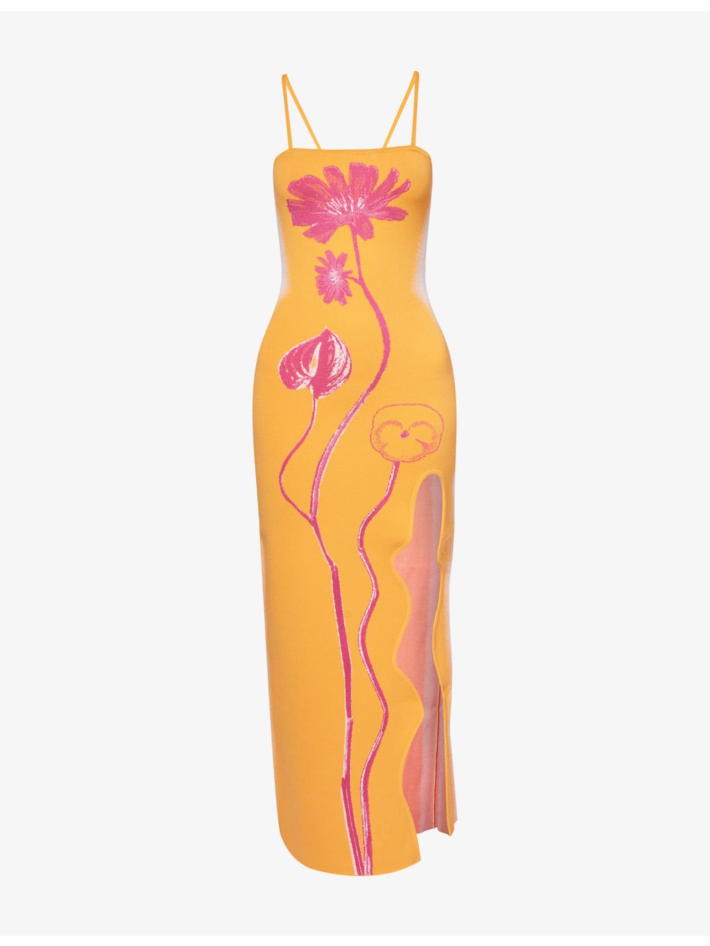 PRODUCT DETAILS - PH5 knitted maxi dress - 71.3% viscose, 17.5% rayon, 9.4% polyester, 1.8% elastane - Slim fit, square neck, detachable adjustable shoulder straps, flower print and wavy split at front, all-over knitted - Machine wash at 30°C - True to size - Size small: length 53in / 135cm - Model is 5ft 10in/1.78m and wears a size small - Midweight, stretchy Ref: R04483332