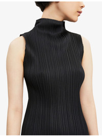 PRODUCT DETAILS - Pleats Please Issey Miyake knitted top - 100% polyester - Slips on - Relaxed fit, V-neck, sleeveless, all-over pleats - Machine wash cold - Made in Japan - Size 2: Length 32 / 81cm - Model is 5ft 10in/1.78m and wears a size 2 - Lightweight, slight stretch - This garment’s sizing is based on height and doesn’t conform to standard sizes. Please refer to the size guide for your desired length. Ref: 1050-78050774-PP98JK102