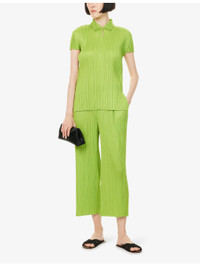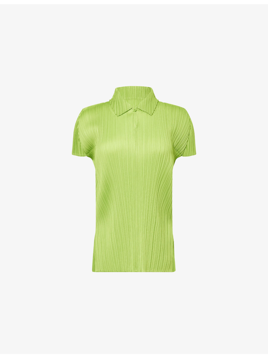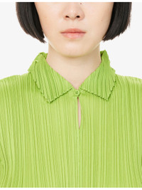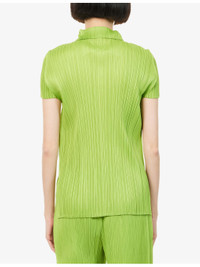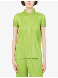 PRODUCT DETAILS - Pleats Please Issey Miyake knitted shirt - 100% polyester - Exposed button fastening at front - Slim fit, polo collar, short sleeves, split at sides, all-over pleated - Machine wash at 30°C - Made in Japan - Model is 5ft 10in/1.78m and wears a size 3 - Lightweight, stretchy - This garment’s sizing is based on height and doesn’t conform to standard sizes. Please refer to the size guide for your desired length. Ref: R04494841