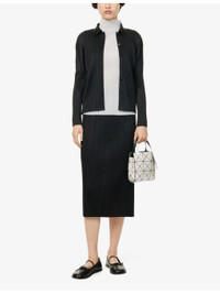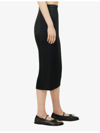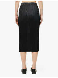 PRODUCT DETAILS - Pleats Please Issey Miyake knitted midi skirt - 100% polyester - Slips on - Slim fit, high-waist, elasticated waistband, all-over technical pleated texture, straight hem - Machine wash cold - Made in Japan - Size 4: length 34in / 86cm - Model is 5ft 11in/1.80m and wears a size 4 - Lightweight, stretchy - The disclaimer has been tweaked slightly as we used to include a size chart in the product details, but this is no longer required as it is now built-in in the size guide online