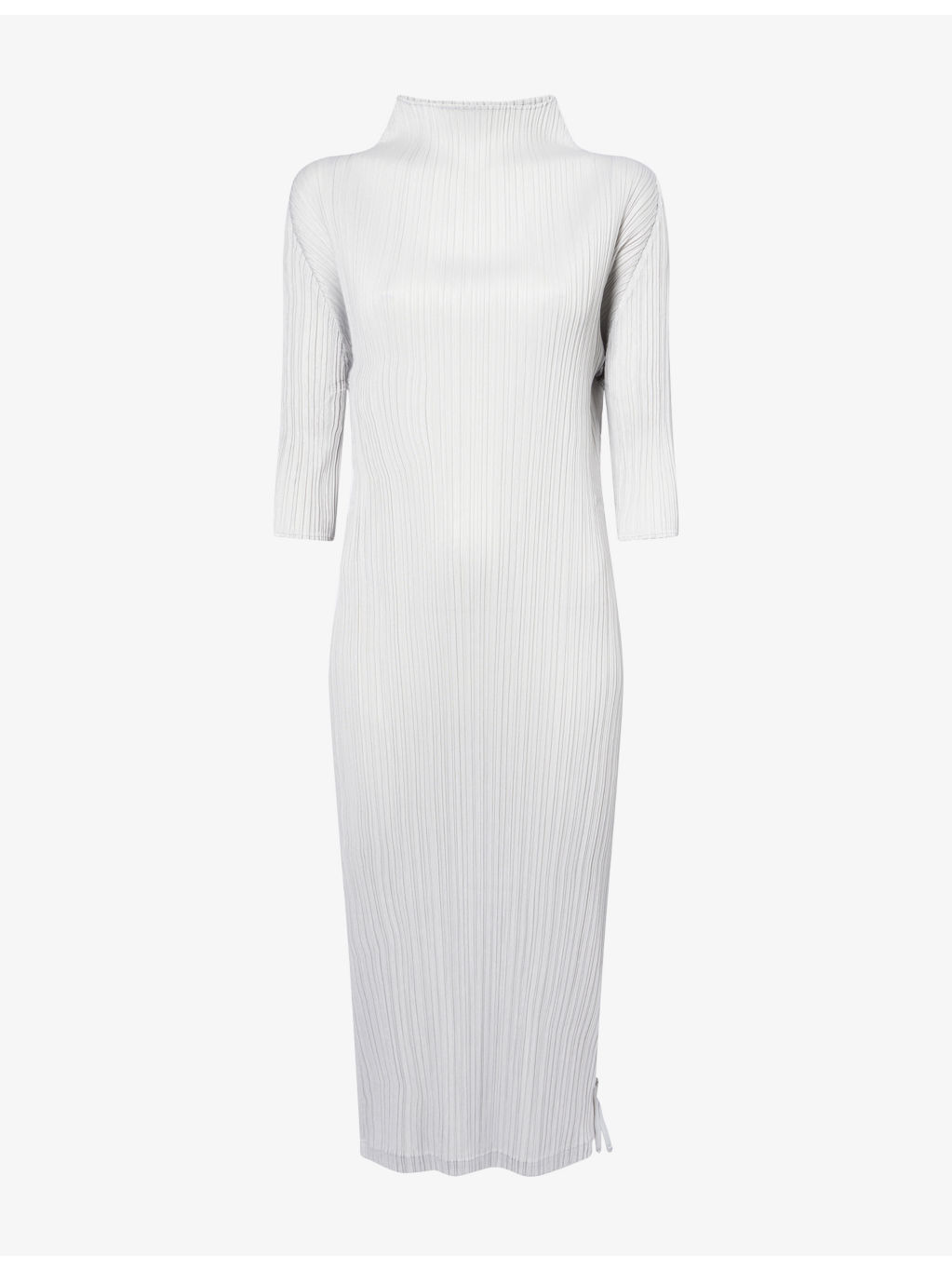 PRODUCT DETAILS - Pleats Please Issey Miyake knitted midi dress - 100% polyester - Regular fit, round neck, three quarter sleeves, plisse texture - Machine wash cold - Made in Japan - Size 3: length 50in/ 127cm - Model is 5ft 10in/1.78m and wears a size 3 - Lightweight, slight stretch - This garment’s sizing is based on height and doesn’t conform to standard sizes. Please refer to the size guide for your desired length. Ref: R04494819