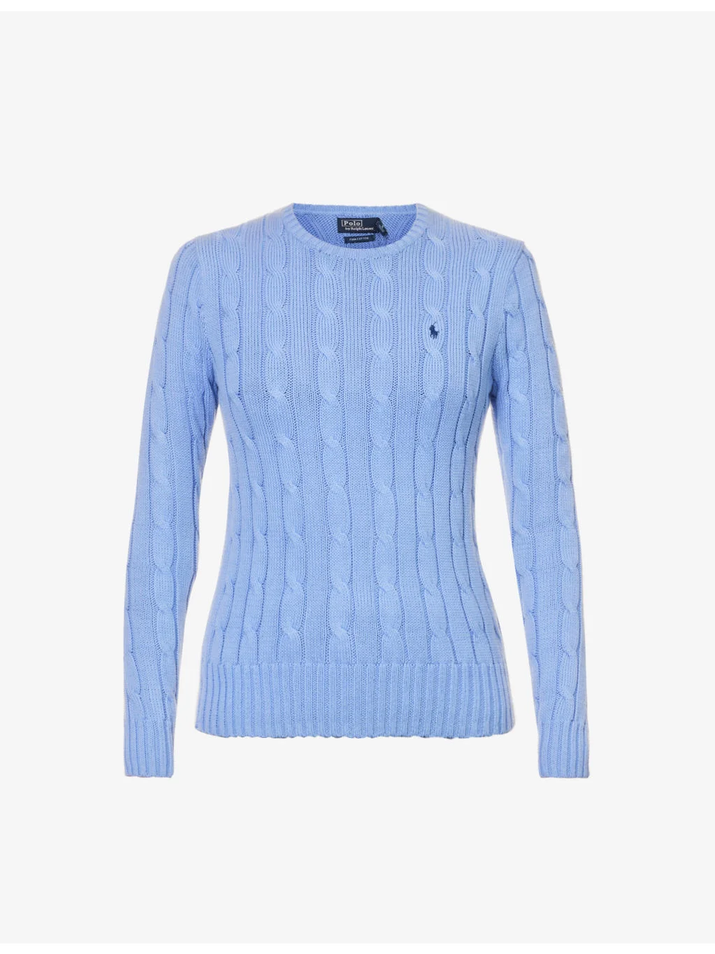 PRODUCT DETAILS - Polo Ralph Lauren cotton top - 100% cotton - Slips on - Slim fit, round neck, long sleeves, signature brand-embroidery at chest, all-over cable knit - Machine wash cold - True to size - Size small: length 22in / 56.5cm - Model is 5ft 11in/1.80m and wears a size small - Midweight, stretchy Ref: R04106438