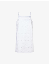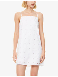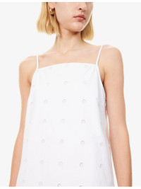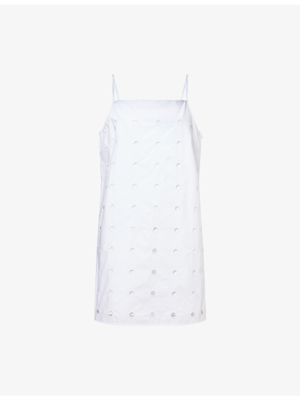 PRODUCT DETAILS - Posse cotton mini dress - 100% cotton - Concealed zip fastening - Regular fit, square neckline, sleeveless, adjustable straps, circle broderie pattern, lined - Machine wash cold - True to size - Size small: length 32in / 81cm - Model is 5ft 10in/1.78m and wears a size small - Lightweight, non-stretch Ref: R04504493