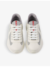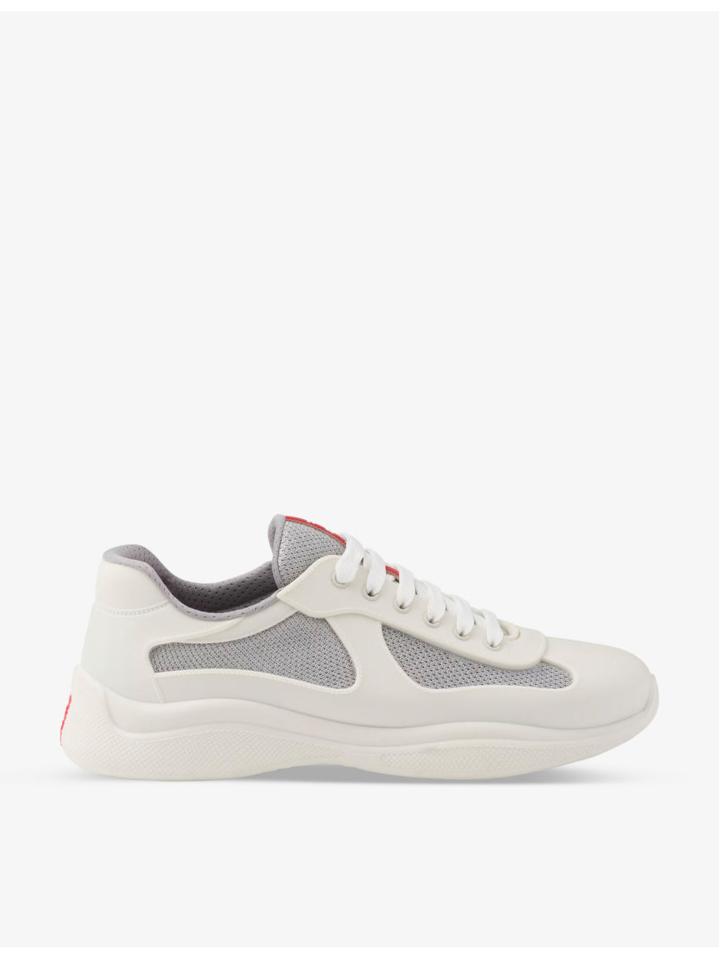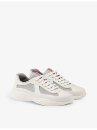 PRODUCT DETAILS - Prada America’s Cup Original leather and mesh trainers - 100% leather, 100% nylon - Lace-up fastening - Removable suede insole, logo on the tongue, 'Beyond the Line' removable tag displaying the season when the original model was introduced in Prada's collections - Specialist leather clean - Made in Italy - Upper: 100% leather, 100% mesh - Lining: 100% suede - Sole: 100% rubber - Please note, we are unable to accept in-store returns on Prada orders Ref: R04337207