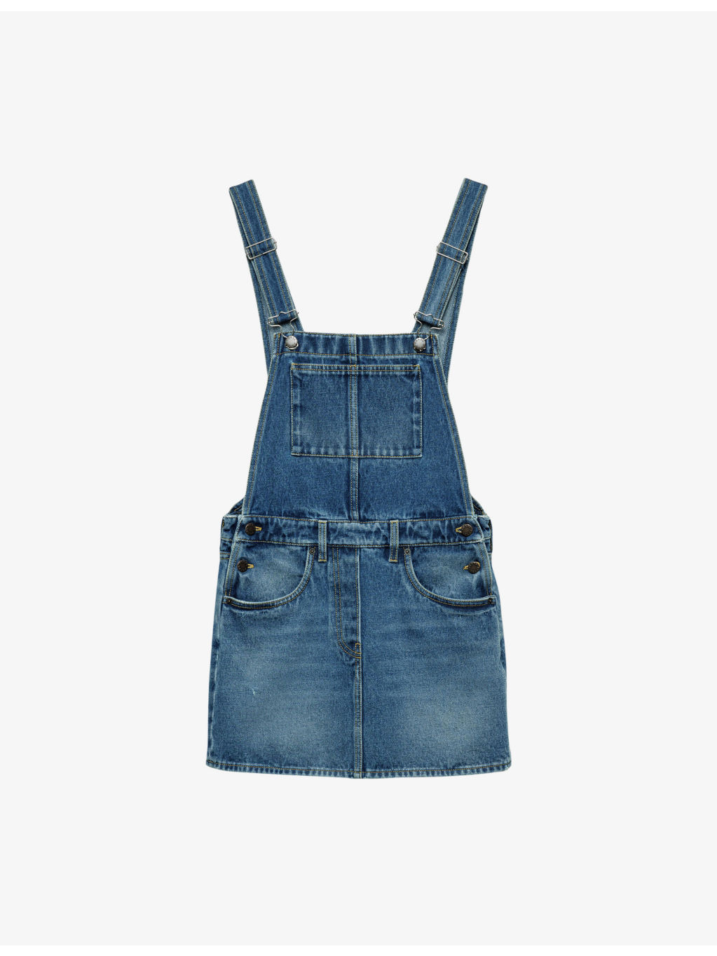 PRODUCT DETAILS - Prada denim mini dress - 100% cotton - Regular fit, square neck, adjustable straps, five pockets, brand patch at back, mid-wash, contrast stitching, branded hardware - Machine wash cold - Made in Italy - Model is 5ft 10in/1.78m and wears a size UK 8 - Midweight, non-stretch Ref: R04464761