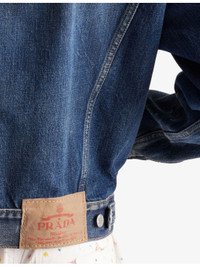 PRODUCT DETAILS - Prada denim jacket - 100% cotton - Button fastening - Relaxed fit, collar, long sleeves, buttoned cuffs, contrast panel at top, flap pockets at chest, slip pockets at front, bleached wash treatment, contrast stitching, logo patch at back, branded hardware - Dry clean - Made in Italy - True to size - Model is 5ft 10in/1.78m and wears a size small - Midweight, non-stretch Ref: R04486678