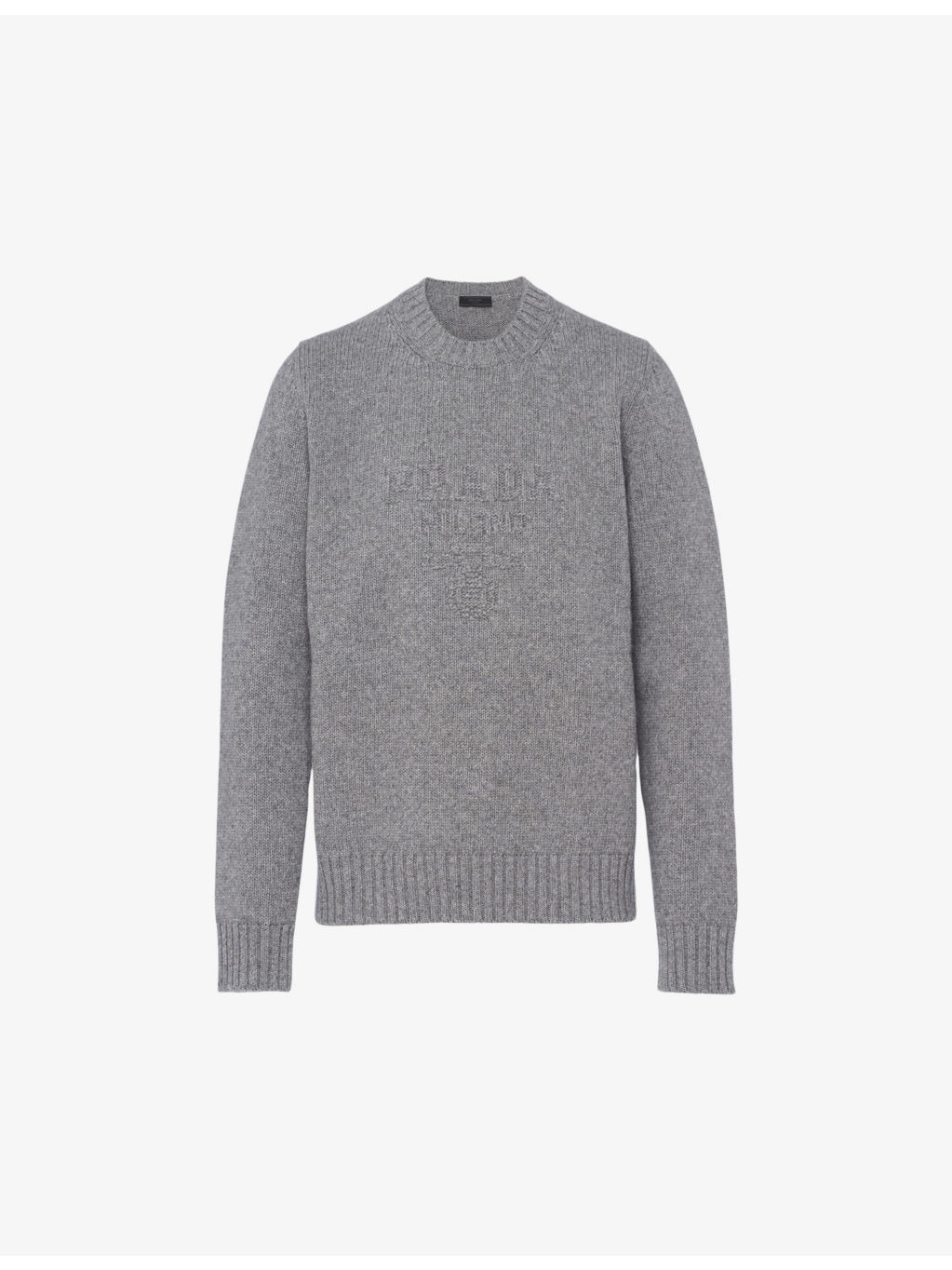 PRODUCT DETAILS - Prada wool and cashmere-blend jumper - 70% virgin wool, 30% cashmere - Pulls on - Regular fit, ribbed crew neck, long sleeve, brand embroidery at front, all over knitted, ribbed elasticated hem - Dry clean - Made in Italy - Midweight, slight stretch Ref: R04267482