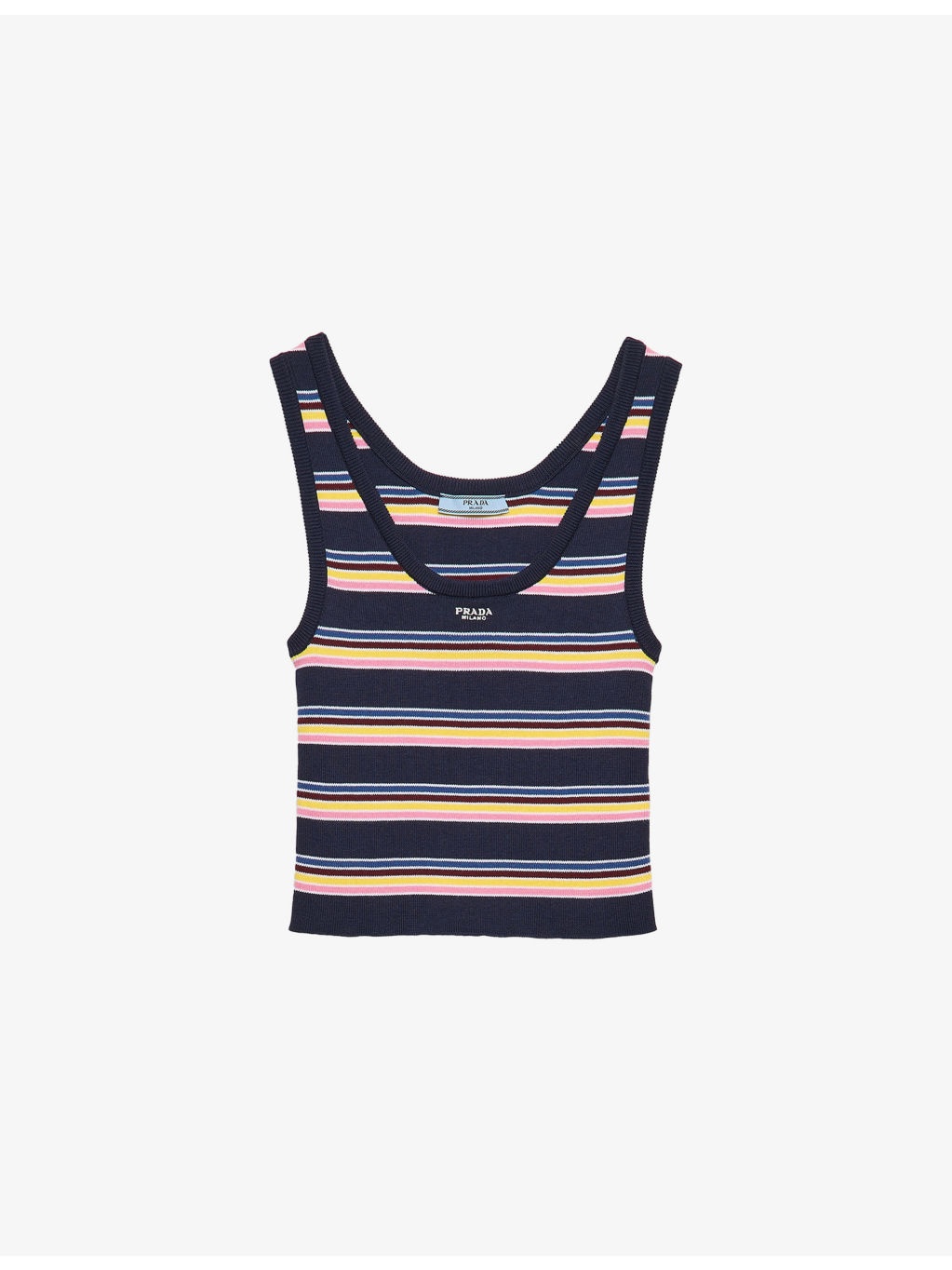 PRODUCT DETAILS - Prada cotton tank top - 100% cotton - Slim fit, scoop neck, sleeveless, all-over striped pattern, brand embroidery at chest - Dry clean - True to size - Model is 5ft 9in/1.75m and wears a size UK 6 - Lightweight, slight stretch Ref: R04463374